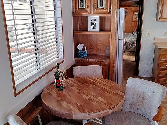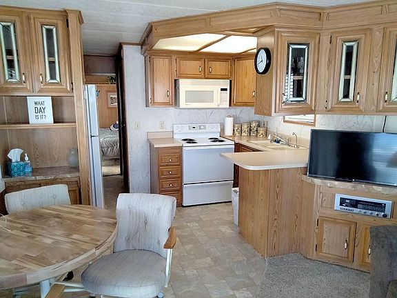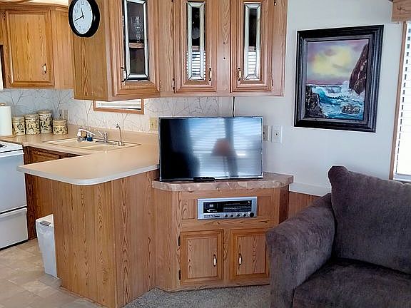 Beautiful home in GOLDEN VISTA 55 plus RESORT. YOU OWN THE HOME AND LAND! Great location in resort. Close to main activity center, pools, jacuzzi, weight room, classes, library and media center. LOW HOA ,(480/quarter), includes water, sewer, garbage, access to free internet, tv, and home phone landline. Lots of sports, clubs, social groups and entertainment for everyone. Home is in excellent condition with nice designer touches. Finished shed has washer and dryer and lots of room for storage. A MUST SEE.