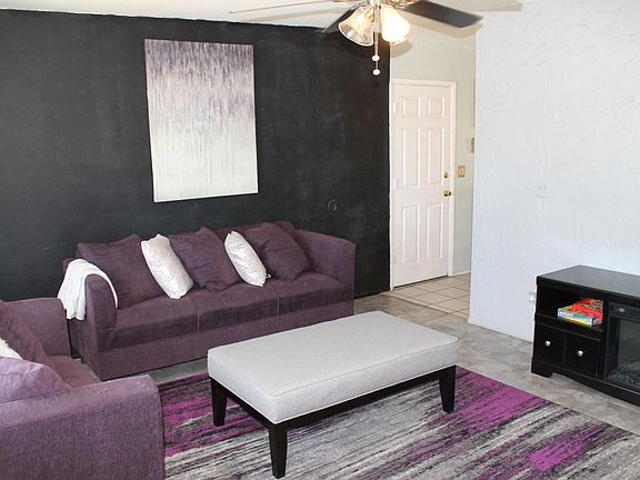 Great East side town home with a garage and a huge backyard that features a two story playhouse! Within walking distance of several amenities including a pool and park.In addition to being close to Davis Monthan, this corner lot home features a chalkboard wall and updated flooring on the interior.