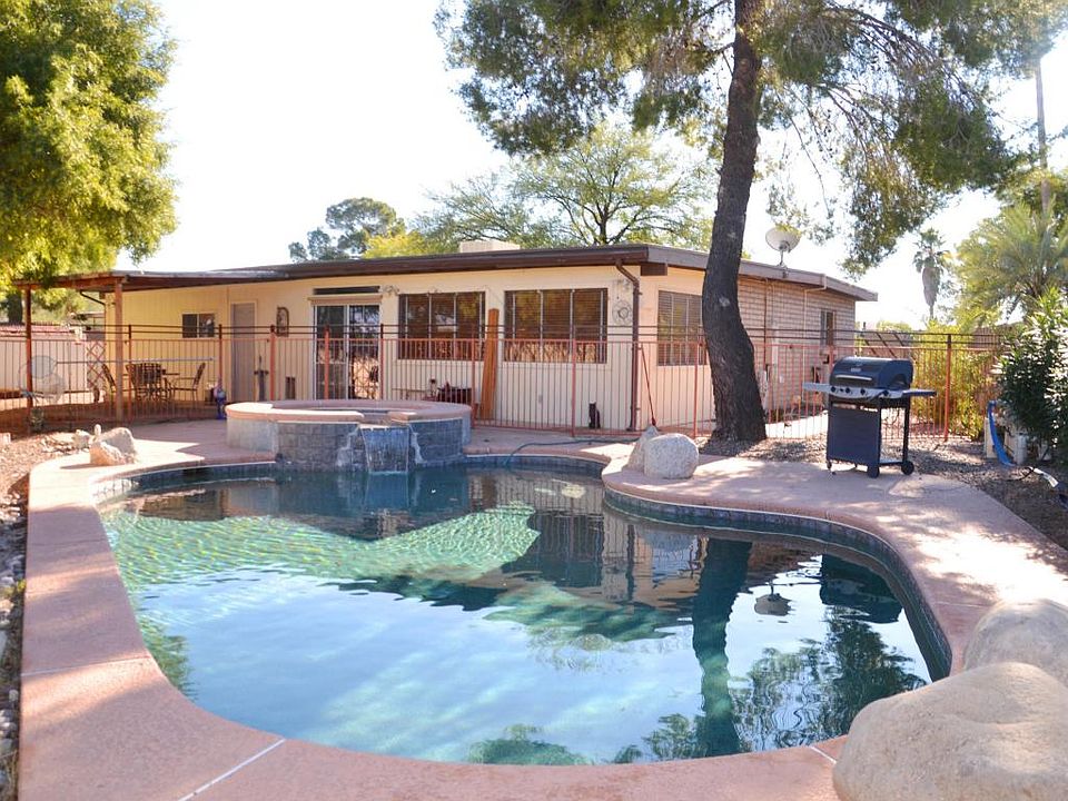 Wonderful 3 bedroom 2 bath home resting on a cul-de-sac. Located close to Military base, Pima Collage East campus and Lincoln Park. Spacious Kitchen with ample counter and cabinet space. Tile in all the right places. Family room has built-in entertainment area, and Ceiling fans in all the rooms. Great backyard. Enjoy the inviting pebble tec pool or relax in the soothing hot tub while listening to the sounds of the waterfall feature. Large Storage room in back (not permitted) Come take a look!
