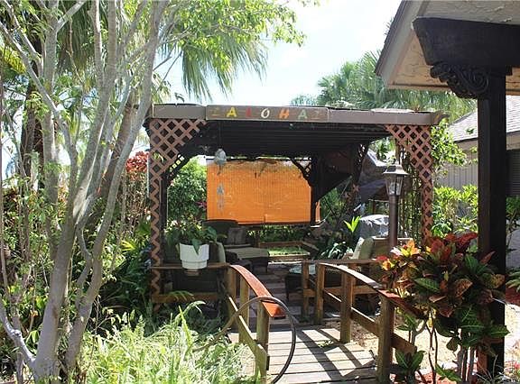 BACK ON THE MARKET! This classic Sierra model Aranda home has so many extras, this home is a must see! A pergola in the front yard provides a tropical oasis featuring a soothing water fountain or you can sit by the large backyard pool and enjoy the private fenced backyard with a brook and pond water feature. The large pool with surrounding pavers is a perfect place for entertaining. This home has an extra 370 square feet under air as the original back porch has been enclosed with sliders to provide additional living space. A focal point in the Great Room is a newly installed electric fireplace that lies beneath a skylight with pecky cypress walls and vaulted wood ceilings. The master bedroom has vaulted wood ceilings with a skylight and a garden-style master shower/tub that opens to the outdoor water feature. Create gourmet meals beneath the French inspired hand painted wall mural with brick stone niche and stainless steel backsplash. The kitchen also features granite countertops and stainless steel appliances. You must act fast to see this one of a kind, special home.