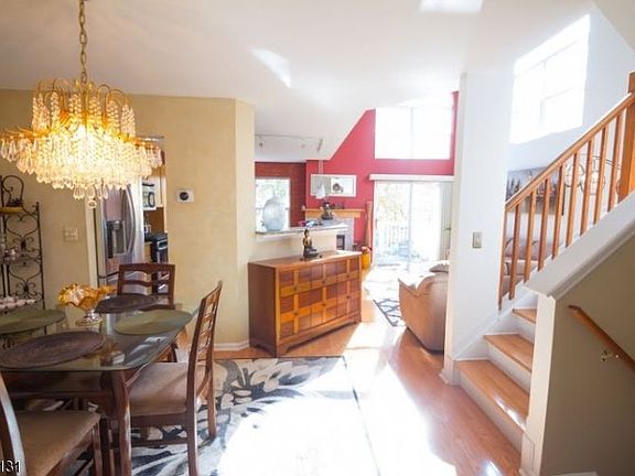 Pride of ownership shines throughout this sun drenched 3 bedroom END unit! Great open floor plan on main level with cathedral ceilings, palladium windows plus beautiful hardwood floors. Updated eat in kitchen with granite counters, breakfast bar and newer appliances. Sliders lead to private deck overlooking wooded area. The 2nd level boasts newer carpeting and convenient laundry room! The master bedroom retreat complete with skylights, walk in closet, full bath, vanity and jetted tub and separate shower! Two more spacious bedrooms too! More space to live and play in the fantastic finished walk out basement with sliders leading to patio facing the woods for privacy. Two car garage! The best location in Berkshire Hills plus convenient to major highways, downtown Denville and midtown.