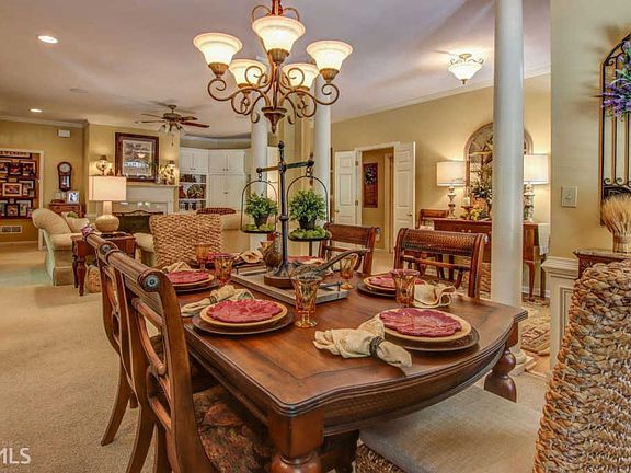 This beautiful home is so comfy and cozy! The double doors open to hardwood flooring, open and inviting dining room and family room with fireplace and built in bookcases with entertainment center. The kitchen is awesome with island/bar area. Lots of solid wood cabinets with solid surface tops. The kitchen opens to the breakfast area and keeping room - these rooms are open to family room with double french doors and opens to the side deck. Split bedroom plan, spacious master with larger bath and a recently updated and organized closet. Area off the kitchen has built in desk, laundry room, pantry and stairs to the large bonus room that is used as a media room.