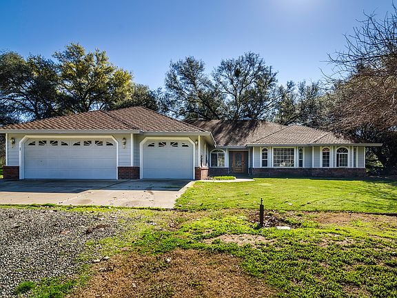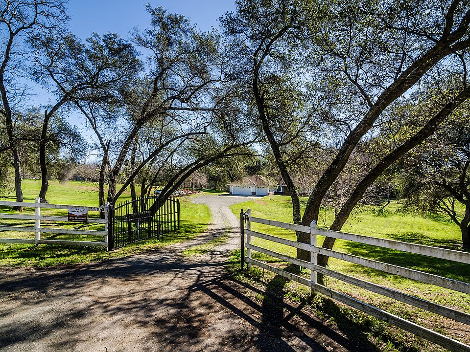 Just updated. Fresh interior paint, new floors through out, cabinets refinished and much more. Wonderful pristine property ready for a new family to love! 10 beautiful acres right off of the Placer Wine Trail. Easy living w/1 story home. The possibilities on this property are endless. Shared interest in lake-size spring-fed pond @ back of property, horse pasture, paddock plus large riding arena, bonus sun room off kitchen/nook area, finished room above garage!