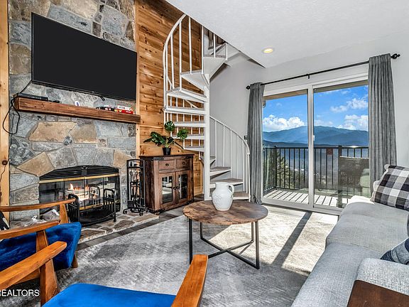 Great Opportunity to invest in a beautifully designed 3 Bedroom/ 2 Bathroom turn-key ready condo at Deer Ridge Mountain Resort located in Gatlinburg, TN, best known for their breathtaking and memorable views of the Great Smoky Mountains. With overnight rental projections up to $49K this would make a great first-time investment property, or the perfect addition to any investment portfolio. The thoughtful design and décor give this condo a luxuriousness with the use of upgraded finishes and stylization, which creates a space of comfort and charm. The updated kitchen has SS appliances, gorgeous granite countertops with plenty of cabinet storage and all the kitchen accessories needed for cooking a meal with ease. The living room has a spectacular floor to ceiling tongue and groove accent wall anchored by a stone wood burning fireplace and is complimented by a cozy sitting area for all guests to relax and enjoy their stay. Access the balcony from the living room or from the Master Bedroom on the main floor and enjoy the breathtaking uninterrupted mountain views. Queen Beds are in both the Master and the Upstairs Loft Bedrooms while the secondary bedroom on the main floor has 2 twin bunk beds allowing you to sleep up to 8 ppl comfortably. The Deer Ridge Mountain Resort subdivision offers a heated indoor pool, jacuzzi hot tub, steam room, picnic and grill areas, tennis courts, clubhouse, playground with basketball court, onsite coin laundry, and outdoor patio area for relaxing and enjoying mountain views. This amazing property is also conveniently located to Dollywood, Pigeon Forge, Sevierville, Downtown Gatlinburg, and the Great Smoky Mountain National Park. Drone photography has been used.