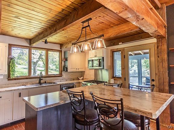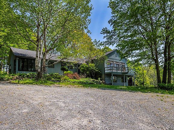 Quiet country living minutes from Cazenovia. Wooded hillside home nestled in the center of 11 acres. Spacious foyer leads you into a grand living room with cathedral ceilings and open floor plan, great for indoor and outdoor entertaining. This home has an open kitchen, dining space and a large screened-in porch with surrounding deck. Lower walk out level has great light with a family room, gym, laundry room, 4th bedroom with full bath. Possible in-law suite, or 1 bedroom rental. This house has plenty of closet space with storage. Many updates, a MUST SEE with an ideal location for commuters between Utica and Syracuse.