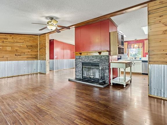 The recently updated manufactured home features new carpeting, modern flooring, and premium shake cedar woodwork paneling. An updated kitchen offers ample space for meal prep and entertainment. A cozy fireplace with adjustable dial speeds ensures comfort on chilly evenings while a large, state-of-the-art air conditioning unit keeps you cool on hot summer days.
