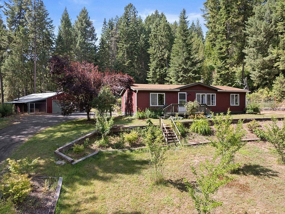 Gorgeous drive up gives way to a peaceful 11 plus acre 3 bed 2 bath manufactured home featuring a 24x30 insulated shop with wood stove. Take in the scenic views from the primary bedroom w/ a walk in closet and spacious bathroom complete with a garden tub. The fenced garden area boasts multiple berries, fruit trees & herbs ready for all of the warm summer nights. Enjoy sipping your morning coffee on your back deck overlooking the captivating waterfall/pond featuring multiple walking trails, abundance of nature and wildlife with close proximity to surrounding lakes. This desirable property will not last long!