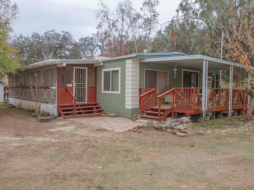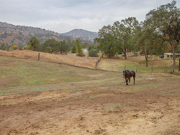 Secluded mini ranch on nearly 5 acres. This unique property is nicely tucked away on a low traffic side road, but is still close to the local store and a short drive to the valley. The land is mostly usable with gorgeous mature oaks and granite rock outcroppings. It is fenced and cross fenced with multiple outbuildings, including a horse shelter and 3 carport. The manufactured home is sound with porches on both sides and is believed to be financeable. If you are looking for a peaceful life away from all the hustle & bustle, this may be the one for you!