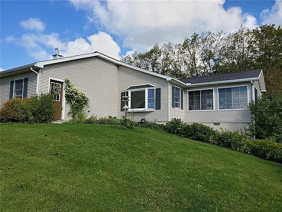3 bedroom Ranch with Anderson Thermopane Windows and Patio Doors. The siding is maintenance free Vinyl with Vinyl Shutters. Exterior walls are 2"x6" vs. 2"x4" for maximum energy efficiency! The foundation walls are poured concrete for maximum strength and no problems with ground water leakage. There is a gorgeous enclosed Sun Porch with a adjoining open Deck. The house sits on 9.8 acres of land with a million dollar view of the Bristol Hills. The property is tastefully landscaped and has several beautiful mature Pine Trees! Must be seen to be appreciated!