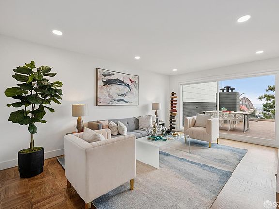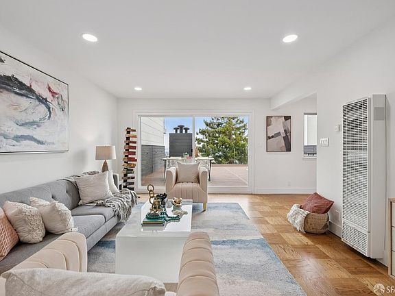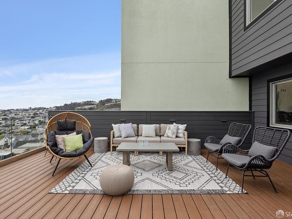 Looking for private outdoor space with panoramic views, a 15-minute walk to Castro Street? This 953 sqft fully renovated two-bedroom with parking, storage, an in-unit washer and dryer, a common yoga room, and a shared yard is located in the exact geographic center of the City and has a huge brand new 552 sqft private walkout view deck (full downtown skyline/bay /east bay hills/panoramic SF hills)off the living room. Small 3-unit HOA with low $450 dues.