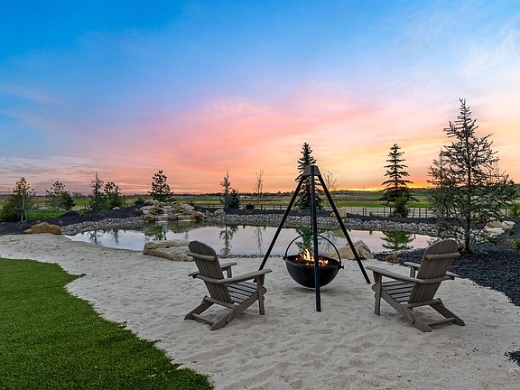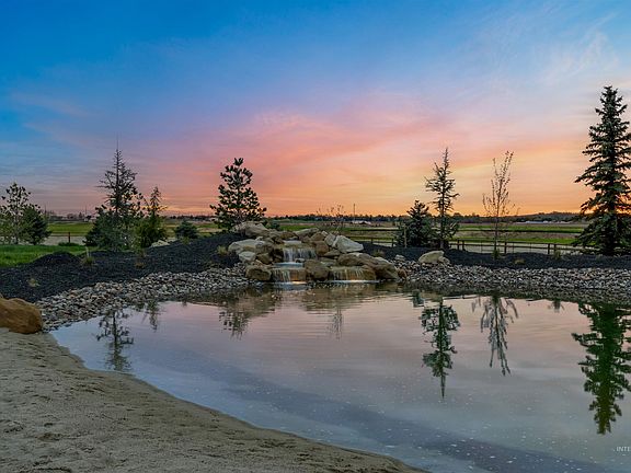 Step into unparalleled luxury with this stunning estate in the serene landscape of Eagle. Nestled on a sprawling 6+ acre lot, this property offers a breathtaking blend of modern luxury & pastoral tranquility, fully enclosed within its own private gates, creating an oasis of privacy & exclusivity. The heart of this home is undoubtedly its chef’s dream kitchen and separate butler’s pantry, featuring leathered quartz countertops and top-of-the-line appliances. Hardwood floors sweep through the home, leading to the master suite. Here, relaxation takes precedence with an above-ground tub, a spacious shower, dual vanities, & an expansive walk-in closet with custom-built storage solutions. 4,400+ sq ft. of garage/shop space including a 50' RV bay & a fully insulated, climate-controlled workshop. Multiple fireplaces, solid wood beams, movie theatre room. Synthetic turf & a sand beach leading into a private pond framed by extensive landscaping covered with trees and shrubs. Bring your horses, chickens and livestock