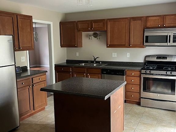 This updated 3-bedroom, 2-bath ranch offers a practical split-bedroom layout for added privacy. The open kitchen includes a gas range, island with storage, pantry cabinets, and a bright dining area with direct access to the backyard.