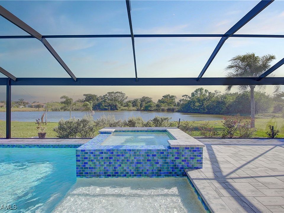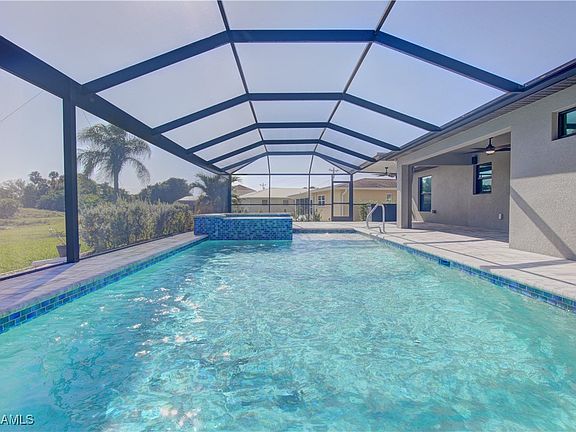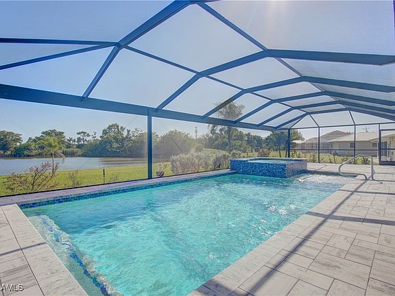 All it takes is one picture and you immediately can tell this isn't your run-of-the-mill pool home. A detailed review will reveal this is a tremendous value and you won't find another home that comes close to this home's attributes, anywhere else, for under $495K! This stunning 2021 built pool home is situated on a picturesque lot that offers breathtaking views of a nearly 2-acre pond and lush green space. The expansive views create a peaceful, natural backdrop, perfect for savoring tranquil mornings, enjoying abundant wildlife, or entertaining in the beauty of the outdoors on your expansive lanai. Added in 2023, the pool and spa resemble the quality and size of those typically found in homes twice as expensive and the paver lanai runs the full width of the home. The covered outdoor living area was also more than doubled in size providing ample space for outdoor dining and living, while still leaving large areas for sunning by the pool. With 4 bedrooms, 2 baths (guest bath doubles as pool bath) and nearly 1,700 SF, you'll enjoy a well designed floorplan that is sure to fit your needs. For peace of mind and low insurance rates, you'll find hurricane impact resistant windows and sliders. The interior design is perfect - modern, but not TOO modern like some homes today, with tile throughout the home as well as beautiful counters and cabinets. All the little details were thought of - from the mini-split AC system that was added to the master suite to provide your perfect sleeping environment, to the large circle drive for convenience when coming and going, to the kitchen sink window that provides a scenic backdrop while working in the kitchen, to multiple bedrooms offering pool and pond views. It's rare to find a home this new that are centrally located to both Veterans and Cape Coral Pkwy bridges and provides such quick access to downtown Cape Coral and all the wonderful amenities it offers. It's next to impossible to find a home this new, in this area, with such a beautiful setting/view, that is so well appointed and upgraded at such a great price! That is, it was next to impossible until this home came on the market! Whether for personal use, an annual rental, or a seasonal rental, with its location, 4 bedrooms, and awesome outdoor lifestyle, this home would work perfect for all options! If you're looking for a special home, something that is unique and different in all the best ways, this home is for you.