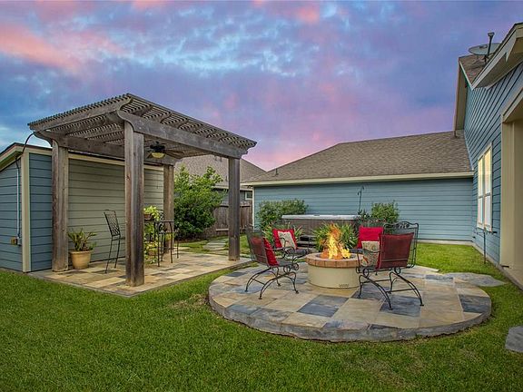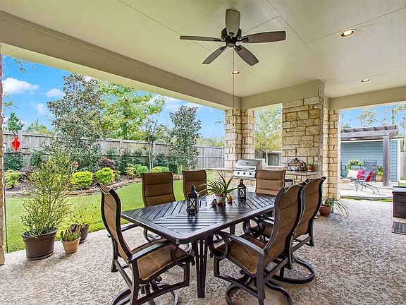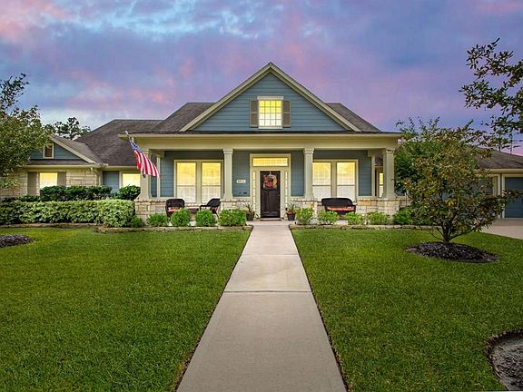 This charming 1.5 Story David Weekley craftsman on a cul-de-sac street in the Gated section of Sable Park is an invitation to simpler times with sidewalks and front porches. The popular \"Lombard\" floorplan offers spacious living with 3 bedrooms down, including a large guest suite with en suite bath, a powder room, formal dining, study, Huge master closet, and an open kitchen to family room with a cozy fireplace. Upstairs you will find a large bonus room with a half bath & walk-in attic access. The home also features a 3 Car Garage, and a private backyard oasis complete with an oversized covered patio with shades, outdoor kitchen, gas fire pit, storage shed, pergola, hot tub, & upgraded landscape! The Falls at Imperial Oaks enjoys a premium location with quick access to 99, I45, Hardy, IAH, The Woodlands, and Exxon Campus. A+ rated Birnham Woods elementary is within walking distance, as well as community pools, tennis courts, dog park, trails, and the 100-acre Lake Holcomb!