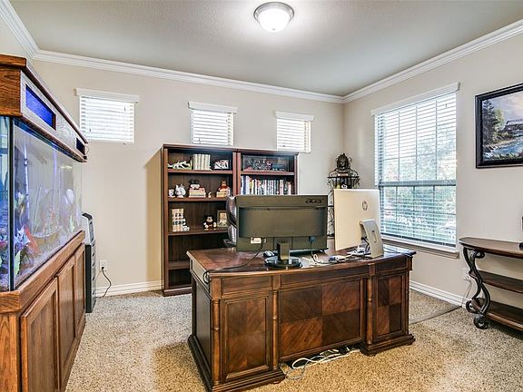 This beautiful and well-maintained property is the perfect family and entertainer home. With 2 offices and an upstairs workstation seating 4, you will have plenty of space for the family to work and study. The kitchen overlooks the backyard and includes an enormous island, double oven, gas stove, and walk-in pantry. In the backyard there is a large covered patio that spans the width of the home with room for a pool and still have plenty of grass. This home is also located on a quiet lot .3 miles from Bush Tpke and within walking distance to The Station, a new highly acclaimed mixed-use development. Other features include a downstairs master suite, theater, and 3-car garage. PLEASE view Matterport virtual tour.