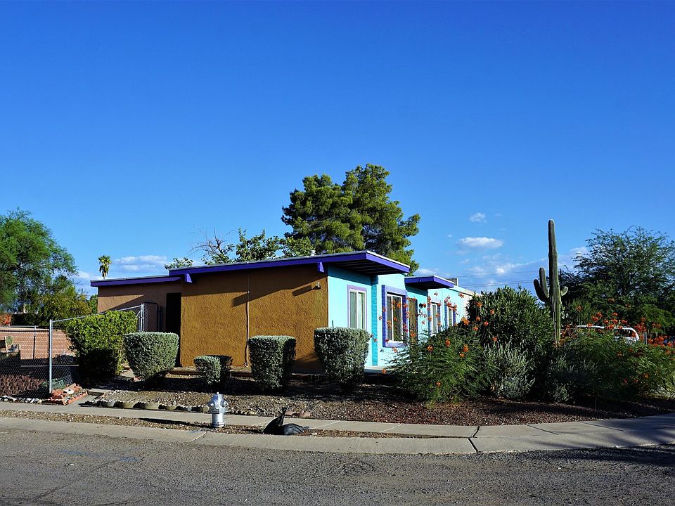 Cute, affordable NO HOA Home! Desirable Corner & Cul de Sac. 2 Large Bedrooms, + Den/Bonus Room. Mountain views from paver patio. Wood-look flooring + Ceramic in Main Living areas. Bathroom with Nice-sized Shower + Solid Surface Countertop. Ceramic Floors & Shower Surround. Kitchen features Gas Range, Refrigerator, Storage Pantry, Extra Height Upper Cabinets. Handy pass through from Kitchen to sweet Bonus Room (Den or Home Office?), with French Doors to yard. Large Laundry Room/Storage + BIG Bedroom Closets, + Outside Shed. Conveniently located near Kolb Road on Tucson's eastside. Near Amazon, DMAFB, shopping, etc. Colorful paint + blooming landscape makes this home a joy to come home to! Valuable updates! Double Pane Windows, AC, Bath/Kit updates. Evap AS IS, Seller used AC