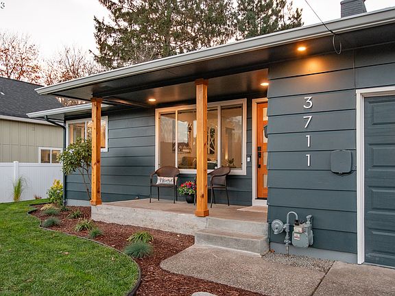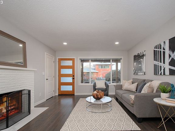 This Mid Century home has been beautifully updated throughout. Stunning refinished and new hardwood floors on the main. Gorgeous kitchen with new shaker style cabinets, slab quartz counters, subway tile backsplash & new KitchenAid SS appliances with gas cook island. Open and spacious dining area with a slider to the covered patio, making it an entertainers dream. Generous sized living and family rooms with wood burning fireplaces, keeping you toasty at night, while adding a touch of ambience. Good size bedrooms on both floors. Updated bathrooms include tile surrounds, floors, vanity, sink & fixtures. Huge back and side yards with 2 new raised garden beds, new fire pit and stringed lights on the covered patio. The new interior, exterior paint, windows, doors, plumbing fixtures, lighting, hardware, gutters, landscaping & fencing completes this home. Possible multi-generational living with exterior side door. Room to add a second kitchen on the lower level. Buyer to do their own due diligence. With a Bike score of 97 and a walk score of 92 this home is a both a Walkers & Bikers Paradise! Just a short walk to dining, shopping, parks & bus line. Only 15 minutes to downtown. [Home Energy Score = 7. HES Report at https://rpt.greenbuildingregistry.com/hes/OR10223003]