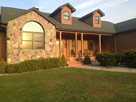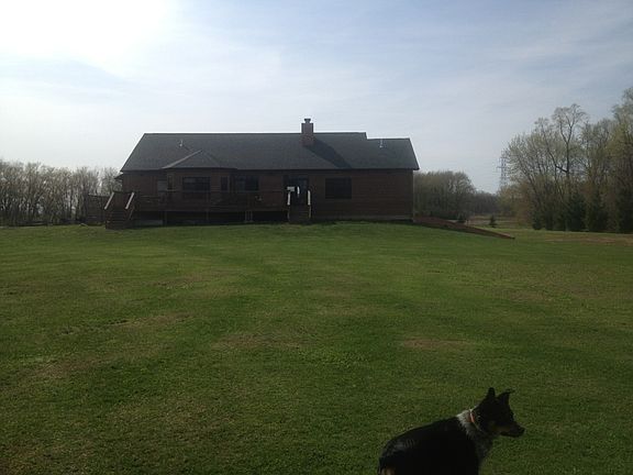 Wow!! Custom built raised ranch home has 4-5 bedrooms, 4 1/2 baths, 2 fireplaces, custom Amish hickory cabinets in kitchen, laundry and master bath, hickory hardwood floors, cedar walls and ceiling, floor to vaulted ceilings, split field stone fireplace in living room, corian counter tops, large walk-in closets, extra storage room in lower level, large rec. room, has plumbed for area for kitchen in lower level, also 2nd. stone fireplace. 3 sets of sliding doors, solid 6 panel doors, large deck off back and patio off rec. room on side. Ranai hot water heater, elec. and bath, 12x24 open face barn, 3 area elec. fenced pasture, 2 dog kennels with concrete pads. 1+ miles to local airport. Abundant wildlife: wild turkey, whitetail deer, fox, and more. All this on 11.94 areas. More land available adjacent to home on both sides. Pole barn is heated with corn burner and a bathroom, has own septic, well and natural gas. Frost free hydrant at horse barn with elec. and lights. 04/16/15