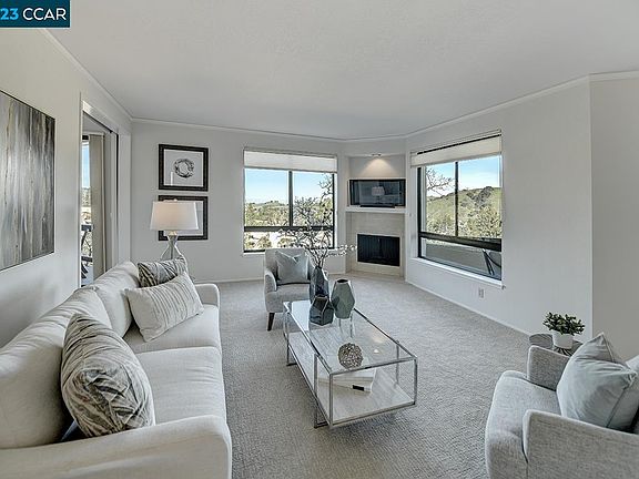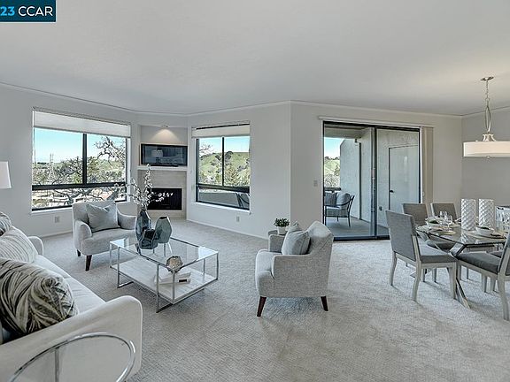 Level-in access to this exceptional home with Panoramic Views of beautiful of Mt. Diablo and rolling hills with Walls of Windows allowing lots of natural light to stream freely throughout that lives like a single family home. This home is nicely updated with lovely décor and high-end plush carpets, custom blended paint, garage with storage & additional carport parking, the distinctive details are endless.