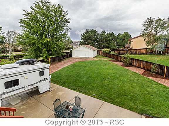 Welcome home to this bright & open four-level w/detached 24'x26' garage/shop, located in the desirable Contrails at Briargate neighborhood, walking distance to Meadowridge Park. Close to schools, shopping, entertainment & easy access to major roads. Tiled entry opens to great room w/ vaulted ceilings & crown molding. Light pours in the skylights adding to the open feel of the great room. The beautifully appointed eat-in kitchen boasts an island w/ breakfast bar, tile floors & counter tops, built-in workstation, incl white