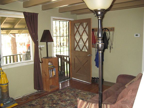 Potential! Potential! Potential! This cute 3 bedroom 1 bath home sits on a DOUBLE lot in Mountainaire. Having the option of splitting the lot provides many options and is an investors dream. Build a garage or split the lot and design your future dream cabin right next door. The home has oak floors, a wood burning stove, TWO separate loft areas & a covered porch to enjoy the sunsets. This beautiful wooded lot is on a quiet street, close to National Forest with minimal traffic. The oversized yard is fully fenced and enjoys a quaint garden and chicken run. This home does need TLC but again the potential is there!!!