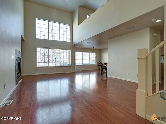 Elegance and functionality are two key words that describe this meticulously maintained West Anchorage townhouse style condo.This home was custom built with an open floor plan and the convenience of RARE MASTER ON MAIN LEVEL. Home sits cross from treed airport land for tons of privacy.You'll love the bright and cheerful kitchen with plenty of counter space, stainless appliances&breakfast bar.pantries, multiple storage closets and a large two car garage. Central Vac, 4 star plus energy efficient and much more. Large windows to enjoy plenty of light with modern ceiling fan in two story living room. Spacious Loft family room or office to use as you please. Newly painted and ready for it's new owner to enjoy. Walking distance to Lake Hood and walking trails makes this a must see. Dues include water/sewer/snow removal/grounds maintenance/exterior maintenance, insurance and basic cable.