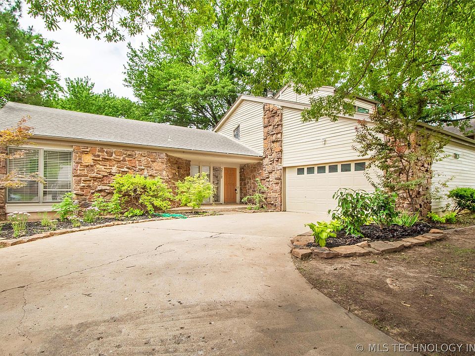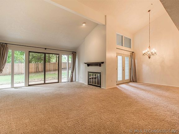 Beautiful, inviting home in friendly Forest Creek - Jenks schools! 4 bed w/ample walk-ins + office w/lg windows & outside entrance. Living & dining ft soaring ceiling, fp, wet bar, lg windows & french doors overlooking yard. Master en suite w/fp & deck.