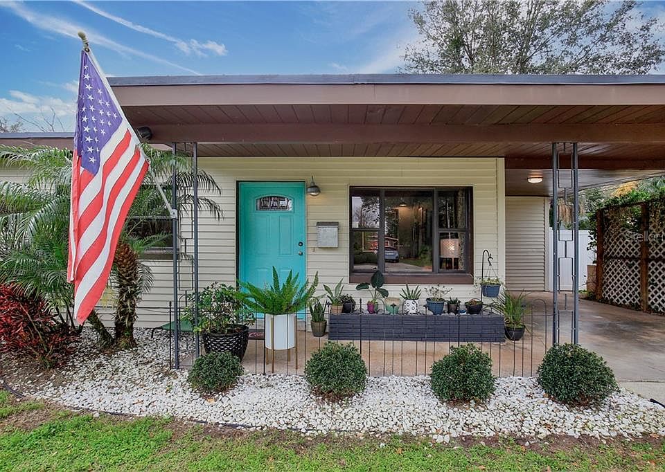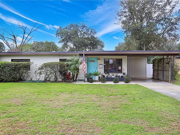 Welcome home! This enchanting three bedroom home is located in the stunning Conway area, nestled minutes from Downtown Orlando. This gem boasts an amazing location as well as a recently upgraded outdoor living space ideal for entertaining or just relaxing solo. Take a dip in the swimming pool with a new screen enclosure, chill out on the screened lanai, enjoy conversation around the stone fire pit, store your gardening tools in the shed and let the dogs roam around the large private yard enclosed by luxurious white vinyl fencing. The pool has a new pump, filter, housing, and baby barrier fence. The front of the home welcomes you with a teal blue door, beautiful landscaping and a shaded car port. Enter through the sunny and spacious living room with tile floors and a painted accent wall. The dining room is illuminated by a chandelier and flows into the kitchen and out to the enclosed patio. The charming mid century modern kitchen combines the perfect mix of something old, something new and something blue! Two tone kitchen cabinets, a vintage Tappan built in oven, stainless steel fridge, wooden shelving, a shiplap island, cooktop and range hood, tile backsplash, and access to the laundry room offering additional pantry storage. The sunlit primary suite showcases vaulted ceilings and a sparkling clean half bath with a brushed gold faucet and updated light fixture. The other two bedrooms are located across from the guest bath featuring an elegant vanity and tiled shower. This home also features a new AC unit and a Nest thermostat. Just a 20 minute bike ride away from downtown and Lake Eola, you'll have a vast array of dining, bars, shops, entertainment and more right outside your door! Take a stroll through Harry P Leu Gardens, visit the Orlando Science Center, browse the boutiques of Audubon Park, bar hop around Ivanhoe Village, and savor the restaurants of the Milk District. You'll also have quick access to Orlando International Airport, 408, I4, 528 and 417. To see this gorgeous and well maintained home just one mile from the upcoming Hourglass District, view the 3D virtual tour and walkthrough video, and call today to schedule a showing!
