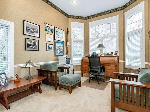 Wonderful opportunity to own a stand alone St Remy garden home with prime pond location on Bloomington’s east side. This pampered home is adjacent to the Hyde Park neighborhood and has great access to College Mall and Indiana University’s cultural activities. This one and a half story with finished walkout lower level features stunning hardwood flooring, two-story great room and dining room combination, main level primary suite with volume ceilings and spa bath plus walk-in dressing room with custom organizers. The entertaining kitchen with island has beautiful ivory cabinetry, custom built by Ferree, has extra butler’s serving area plus eat-in breakfast room with 180° views of the neighborhood lake. Beautiful south light enhances the view of this lovely space. The main level also hosts a beautiful study with built-ins and a beautiful green space view. The upper level has a library loft with custom built-in bookcases plus two large bedrooms and a hall bath. Don’t miss the storage attic! The lower level is perfect as an Inlaw suite and has a wet bar, additional guest bedroom, plus an additional bedroom suite that is oversized. There’s a handy utility room with workshop perfect for off-season storage and projects. There are two deck systems and a lower level patio that provide opportunity for enjoying the beautiful mature vegetation and water space surrounding this pristine home.