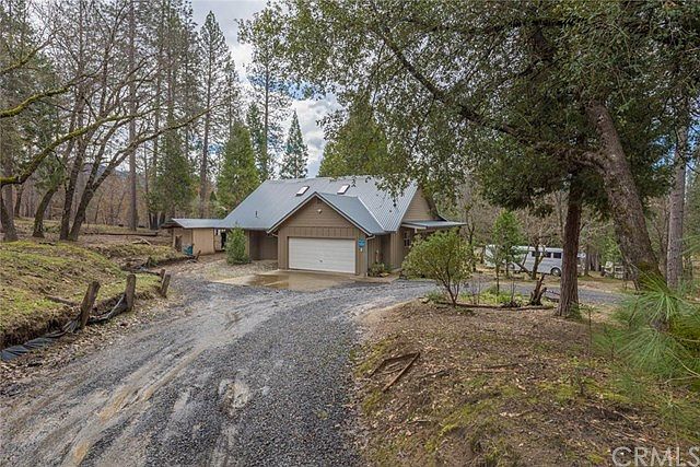 Looking for a Lake House? This incredible, beautiful home sits on 9 acres overlooking Concow Lake. Built in 2010, this one-of-a-kind home has way too many custom woodworking features to even count! The attention to detail by the owner/builder is an absolute pleasure to see. The property is very private, serene, quiet, peaceful and offers lake and mountain views. The covered wood walkway leads to a beautiful 470 sq. Ft. covered deck overlooking the lake as it welcomes you into the home. Upon entry, you'll notice the solid custom wood floors, dual-pane picture windows wrapped in custom wood trim, one-of-a-kind built-in entertaining bar, wood siding throughout and, of course, the 20Ft. Vaulted Ceiling w/2 dormers windows bringing in tons of light. The open kitchen and living area is fantastic. It has custom hand-made cabinets and handles, an island w/slate tile-top edged with custom woodwork, stainless appliances, and a propane oven/range. Both bedrooms are on the main level. The master bedroom has lake views & the master bath has a custom vanity, hammer copper sink, and a fantastic floor-to-ceiling tiled shower w/2 shower heads. The guest bedroom is currently utilized as an office with a built-in desk and wood sided walls. There is a custom log staircase leading to the loft area w/storage, and extra room, and an open bonus room w/elevator to the lower level. All this and more with Cement Board and wood trim siding, Metal Roof, Radiant Heating. Propane Fireplace. Etc.