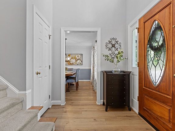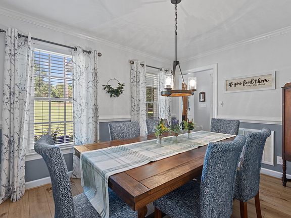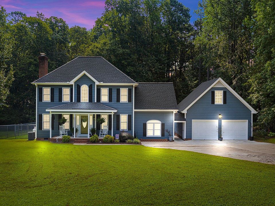 Culinary aspirations come to life in this tastefully renovated kitchen! Crisp white cabinets, quartz countertops and ceramic subway tile backsplash add a classic touch. Recessed lights and a large picture window allow the room to be bathed in light, and Stainless-steel appliances complete the sleek look of the kitchen. Luxury Vinyl Plank flooring adorns the entire 1st floor. Family room just off the kitchen offers a brick surround fireplace with gas logs. Spacious master bedroom with LVP hardwood floors and Walk in Closet. Nestled within a serene, and well-established community, this home offers peaceful living. Situated at the end of a quiet cul-de-sac, the property boasts a generously sized lot spanning .92 acres, enveloped by a fully fenced yard. For those who enjoy the outdoor activities, the homes proximity to a brand new water park is a distinct advantage. A covered front porch makes a wonderful space for relaxation and enjoying the outdoors. Above the detached 2-car garage that's wired for a generator, you'll find an expansive storage area. The exterior was painted in 2017 & the roof was replaced in 2018!
