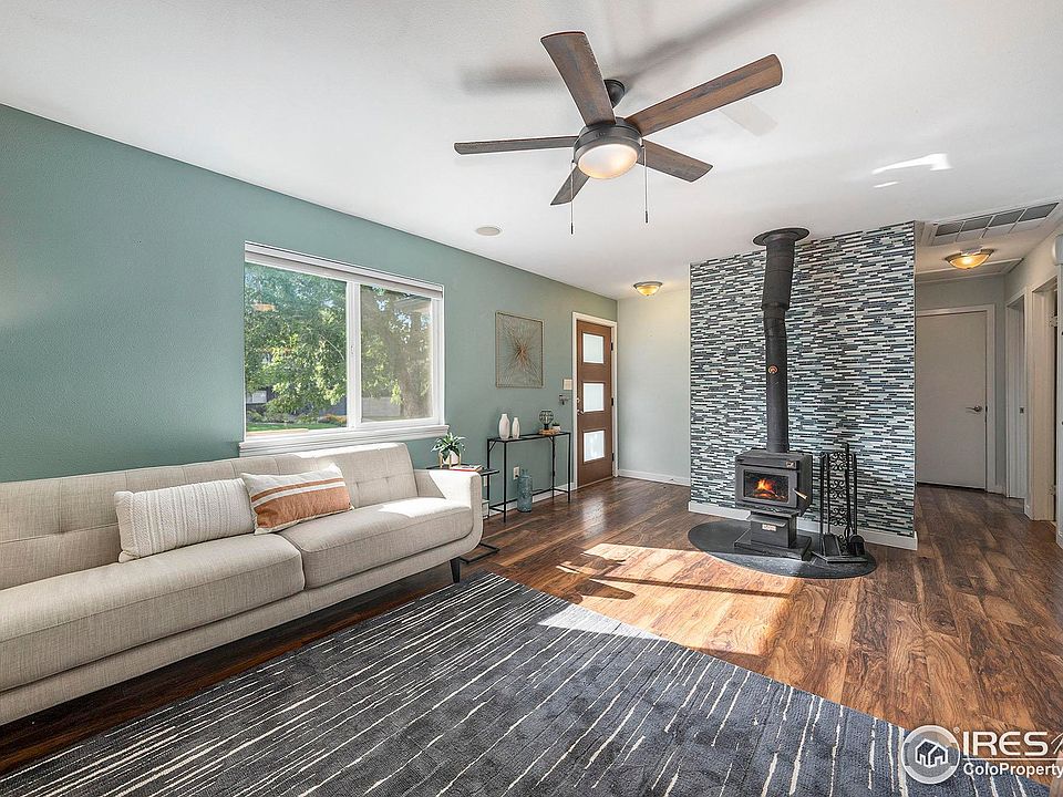 From the moment you arrive, you'll notice the pride of ownership in every detail of this beautiful home. Inside, enjoy a warm and inviting living space featuring luxury vinyl plank flooring throughout, a cozy wood stove for those chilly Colorado evenings, and tasteful updates that truly make this home shine. The updated kitchen is a true highlight, thoughtfully designed with quartz countertops, soft-close cabinets, pull-out spice rack, and a convenient on-demand hot water dispenser. Newer stainless steel appliances add a modern touch, ensuring both style and functionality. Whether you're cooking a quick breakfast or entertaining guests, this kitchen checks all the boxes! The updated bathroom fixtures and plumbing provide peace of mind and a fresh, modern feel. A newer on-demand water heater ensures energy efficiency and comfort, while the evaporative cooler helps keep utility costs low during the warmer months. Step outside to a shady, landscaped lot with a recently updated irrigation system featuring high-efficiency sprinkler heads and a rain sensor to keep your yard green with minimal effort. There's also additional parking adjacent to the driveway - perfect for a second vehicle, trailer, or small RV. Storage and workspace are no issue with the oversized 1-car garage, complete with an epoxy-coated floor for durability and easy maintenance. Whether you're a hobbyist, cyclist, or weekend adventurer, you'll appreciate the flexibility and storage options this space provides. Enjoy the lifestyle of west Fort Collins with quick access to the foothills, hiking and biking trails, top-rated schools, and the laid-back charm of nearby cafes and shops. Homes in this location with this level of care and updates don't come on the market often - and certainly not at this price!