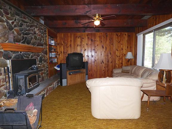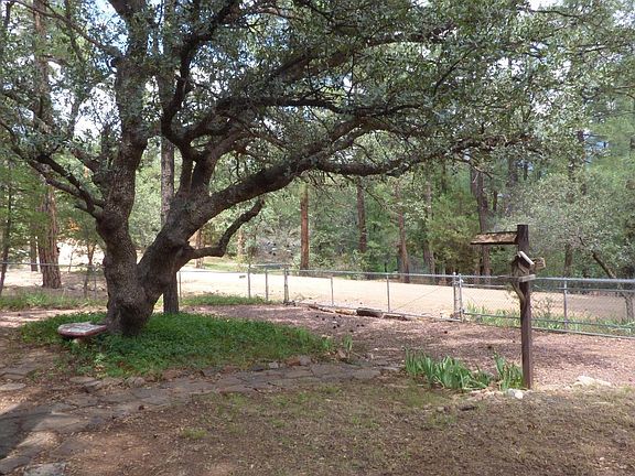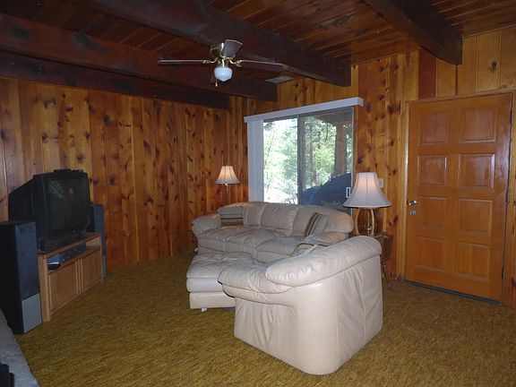 Just the rustic cabin get-away you have been looking for! The inviting livingroom offers a beautiful native stone fireplace with insert, knotty pine walls & exposed beam ceiling, built-in bookshelves, a dining area, 2 sliding glass doors that look out to the covered patio & front yard. Step up to the charming kitchen featuring knotty pine cabinets & a quaint dining nook. Potential bedroom (no closet) & full bath + 2 bedrooms in upper level. A back door leads out to a nicely treed & terraced backyard, carport, unfinished bunkhouse, wood shed, metal storage shed, chainlink fenced yard with sliding gate, 2 driveways with ample parking area. Sit a spell under the old oak tree & enjoy the cool evening summer breeze & starlit night sky!