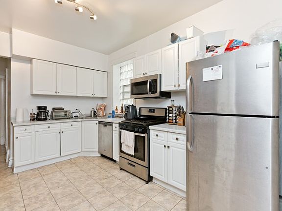 Welcome home to this huge 4 bed 2 bath duplex down in the heart of Wrigleyville with garage parking included. Absolutely massive unit features TWO living spaces- one upstairs and one downstairs, plus formal dining room. Beautiful hardwood floors adorn each room. The kitchen has plenty of cabinet space, new stainless steel appliances and granite counters with room for a small kitchen table. Each bedroom will fit a queen bed+ dresser with walk-in closets. THREE generous storage spaces as well to cover all your storage needs. Unit complemented with central heat and air as well as in-unit laundry. Large yard with grass and one garage parking spot INCLUDED at this price. Centrally located in the heart of Wrigleyville, enjoy all the nightlife and fun the neighborhood has to offer right outside your door. Easy access to both Southport Brown Line and Sheridan/Addison Red Line. Pet friendly building. $500 move fee only.