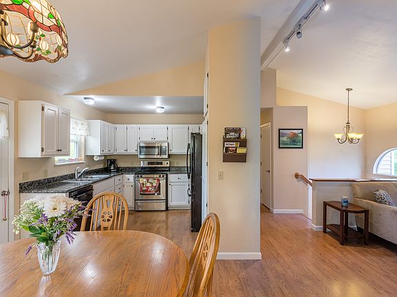 Square footage overload on this 4 bed, 2 bath Arnold home on corner lot with stunning views and partially fenced yard. You will fall in love with the airy feeling of the living/dining/kitchen combo living space upstairs. Dining room walks out to the large deck overlooking the back yard with stellar view of the valley. Perfect for quiet evenings or gorgeous morning sunrises. 3 upper level bedrooms with Jack-n-Jill bath to the main floor master bedroom. Crisp clean paint colors and added windows for excess natural light. Built in pantry in kitchen, appliances stay. Lower level offers 4th bedroom which could be a private master suite that walks out to gorgeous Wisteria covered patio of the fenced, level portion of back yard. Bonus room for office, playroom, or workout room and unfinished storage room w/ laundry. 2 car attached, oversize garage, storage/workbench area and additional paved parking on the side of the driveway. Beautiful landscaping and even more outside storage space.