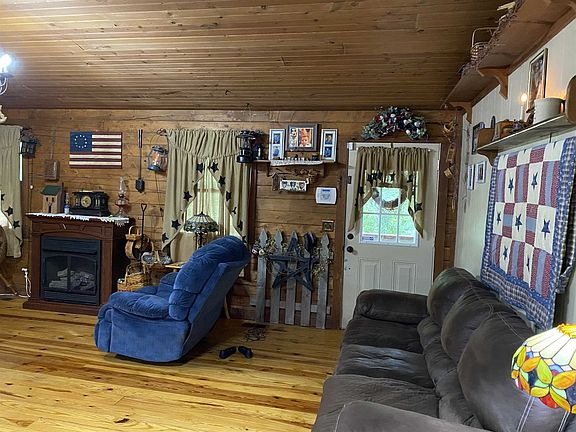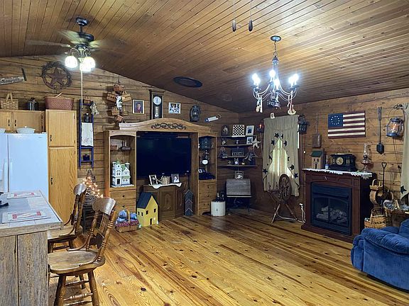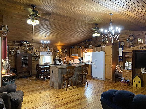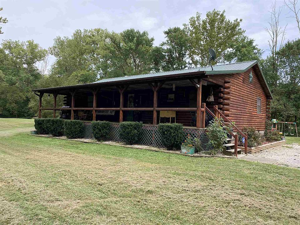 GORGEOUS LOG CABIN HOME SITUATED ON 5.10 ACRES MINUTES FROM HWY 37. ENJOY THE VIEW FROM THE COVERED FRONT PORCH OVERLOOKING SALT CREEK, NATURE GALORE, LOTS OF DEER, FISHING IN YOUR FRONT YARD, MULBERRY BUSHES, CRAB APPLE TREE. THE FINISHED 1344 SQ FT DREAM CABIN OPEN LIVING/KITCHEN WITH CATHEDRAL CEILING, HUGE 2 BR'S WITH CEDAR LINED WALK IN CLOSETS, 1 BATH. NICE BACK DECK WITH ABOVE GROUND POOL FOR RELAXING. DETACHED 30X40 POLE BARN GARAGE. LOCATED IN A FLOOD PLANE