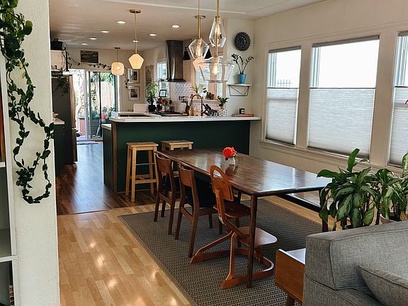A lovely sun drenched 2 bedroom, 1 bath house in the heart of the Laurel District with a 125 sq ft backyard ADU to act as an office and/or spare bedroom. Includes lush and spacious private backyard and garden. House includes an updated kitchen, forced-air heat, 160 sq ft garage for storage and EV charger. Appliances include refridgerator, oven, gas range, and washer + dryer. Pets ok. - Walk to Ghost Town, Joes Modern Thai, Sequoia Diner and Farmer Joes grocery. - Monthly gardener for back yard upkeep negotiable. - Furnished house also available for additional $150/month. - Tenet pays for PG&E, water, and garbage 1-year minimum lease. Renter pays for utilities, water, trash, and internet. Front yard gets a gardener 1x/month included. Renter in charge of backyard maintenance or negotiable gardener.