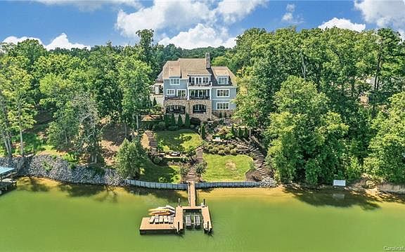 Exquisite Lake Wylie waterfront home w/ magnificent lake views! Relax and live outdoors on the spacious terrace, covered porches, outdoor patio w/ fireplace, or floating dock with boat lift. The open floorplan is great for entertaining & includes formal dining room, great room with fireplace & built-ins, plus executive office w/ rounded wall of windows & vaulted ceiling. You'll love the gourmet dream kitchen w/ Thermador appliances, marble counters, butcher block island, & huge pantry. Incredible main level master retreat offers sitting area, fireplace, & access to terrace overlooking the water. Luxurious master bath w/ dual vanities, whirlpool tub, walk-in shower, & spacious closet that will wow you. The upper level of this dream home provides 4BRs, exercise, & bonus room. Fabulous lower level boasts high ceilings, huge rec room w/ fireplace, bar/ billiard area, dressing room, & 2nd master suite. Professionally designed landscape yard w/ waterfall.