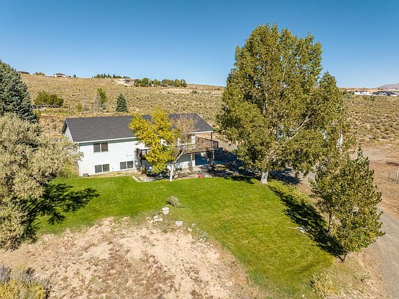 This beautiful property with a tree lined driveway is 2.8 acres, minutes from town, with quick access to amenities, on paved roads, with a shop! From the moment you walk in this home you can feel how well built it is and the care and consideration the builder had for materials used and the design of the home. The upper level offers 3 large bedrooms and 2 full bathrooms with a great view of the Ruby Mountains from the wrap around deck. The large kitchen is open and spacious, flowing into the dining area that has large windows, offering an abundance of natural light. The lower level of the home is a stand alone apartment that could have multiple uses, with 9 ft ceilings and a daylight walkout basement, it features a separate entrance. It could be set up as a separate home on its own with 2 bedrooms and a full bathroom with an open floor plan living room, dining, and kitchen. This space could be an investment opportunity, or a great mother-in law suite, whatever suits your needs. The large lot also offers a spacious 48 x 24 shop divided into two separate spaces, and storage shed surrounded by mature trees, lawn, and space for you to make it your own! (Some photos are virtually staged)