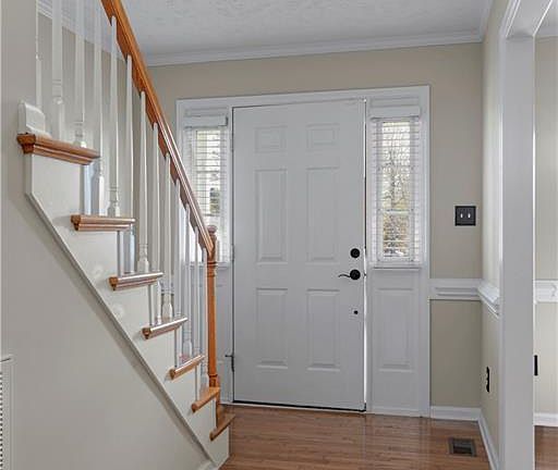 Great floorplan with large master downstairs. Vaulted ceiling and open catwalk over family room. Fresh, new carpet throughout and newly painted as well. Beautiful wood flooring in foyer extending to the formal dining room and the kitchen. Stainless steel appliances, granite countertops & tile backsplash. Vaulted ceiling in master bedroom and closet system in master closet. New Century desired elementary schools and Jack Britt High School