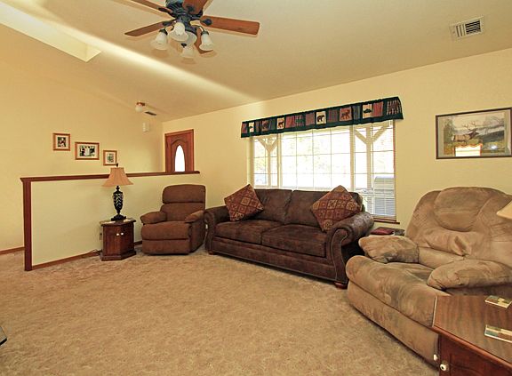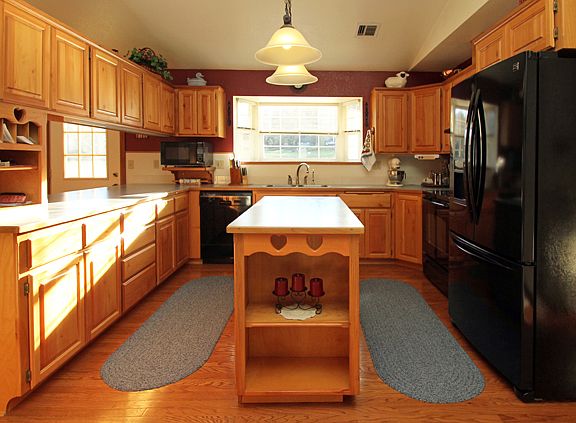 Beautifully maintained one level home on 3.54 acres! Features a front porch, vaulted ceils, skylights, ceiling fans, & new pellet stove! Kitchen features Chinquapin wood cabinets, hardwood flooring, island, pantry, garden window, & newer appliances. Large dining room with door to back yard. Forced air with heat pump, newer 30 year roof, good well, sand filter septic, shed, and oversized 2 car garage! 10x12 shed is finished & insulated!