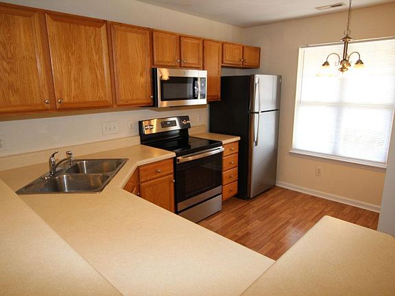 2 bedroom Townhome with bright & open floor plan. Easy access to I-540 and Triangle Center Mall! Open floor plan. Kitchen with breakfast bar overlooking dining room and living room and stainless steel appliances. Two master suites with their own private full baths. Bedroom #2 has cozy window seat. Inviting front porch and small community with pool. Washer & dryer included. 2 assigned parking spaces. $1,550/month. Maintenance free and professionally managed. Available starting 11/8/24. 12 month lease minimum. Tenant responsible for all utilities, including electricity, gas, & water/sewer/trash. Pets negotiable. No smoking allowed. Application fee is $75 per adult applicant.