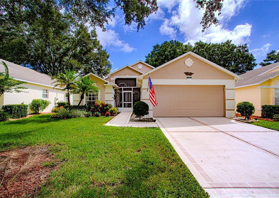 Step into the sought-after Oxford model, a thoughtfully designed 2-bedroom, 2-bathroom residence with a versatile den/office that can easily serve as a guest room, hobby space, or private study. This beautifully maintained home welcomes you with an open and airy floor plan, blending comfort and function for both everyday living and entertaining. The spacious living and dining areas flow seamlessly into the kitchen, creating the heart of the home where family and friends can gather. Natural light fills the interior, highlighting fresh finishes and a warm, inviting ambiance. The three-season room extends the living space, offering a tranquil retreat to enjoy morning coffee, read a book, or simply unwind while overlooking your landscaped surroundings—a true extension of the Florida lifestyle. As a resident of Kings Ridge, one of Central Florida’s premier 55+ communities, you’ll enjoy a lifestyle that feels like a permanent vacation. This active-adult neighborhood features two championship golf courses and an impressive multi-million-dollar clubhouse that serves as the social hub of the community. Spend your days swimming in one of three heated pools, relaxing in the spas, or staying fit in the well-equipped fitness centers. For those who love recreation, the community offers tennis courts, pickleball, shuffleboard, bocce, and billiards. An active social calendar ensures there’s always something to do—from clubs and classes to events and entertainment. Practicality meets convenience with lawn maintenance included, giving you more time to focus on enjoying the vibrant community lifestyle. Whether you prefer quiet evenings at home, a round of golf with neighbors, or participating in group activities, Kings Ridge offers the perfect setting. Ideally located in Clermont’s rolling hills, just minutes from shopping, dining, medical facilities, and cultural attractions, the community also provides easy access to Orlando’s world-class theme parks, international airport, and entertainment venues. This home truly offers the best of both worlds—peaceful living in a gated, resort-style setting with the conveniences of city life close at hand. If you’re seeking an active, carefree, and welcoming lifestyle, this Oxford model home in Kings Ridge is the perfect choice. Move right in and start enjoying everything this vibrant 55+ golf community has to offer.
