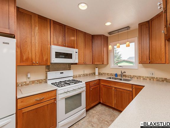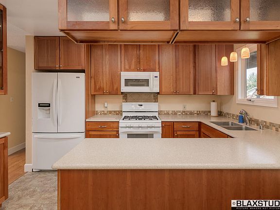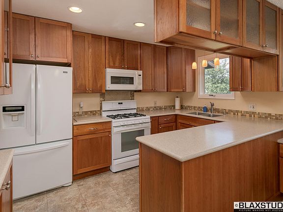 Exquisitely maintained home in East Anchorage! Boasting a beautiful kitchen remodel with built in office area and new paint throughout. This home is move in ready! Pre-inspection done with all repairs completed! Big ticket items complete to include newer roof, boiler, furnace, and paved 2 car driveway! Relax on your deck perfect for entertaining in your fully fenced backyard with storage shed.