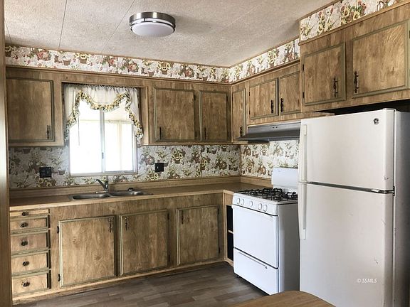 This 1979 doublewide is a real gem!! New flooring, new furnace and tankless water heater is only 5 years old .Easy care and tasteful landscaping with a 1 1/2 car garage with evap cooler!. Concrete driveway and carport with chain link fencing. The home is super clean and spacious with 2 bedrooms 1.75 bath. Window mounted evap in living room and wall a/c in master bedroom. Roomy kitchen with fridge and dishwasher. Hall bath is a 3/4, master suite is nice sized with a wonderful walk in closet! There's even an enclosed porch/sunroom! The garage has one wall of built-ins and a full bathroom (not permitted). Garage is 19'7" deep and 26' wide. This place is wonderful!!