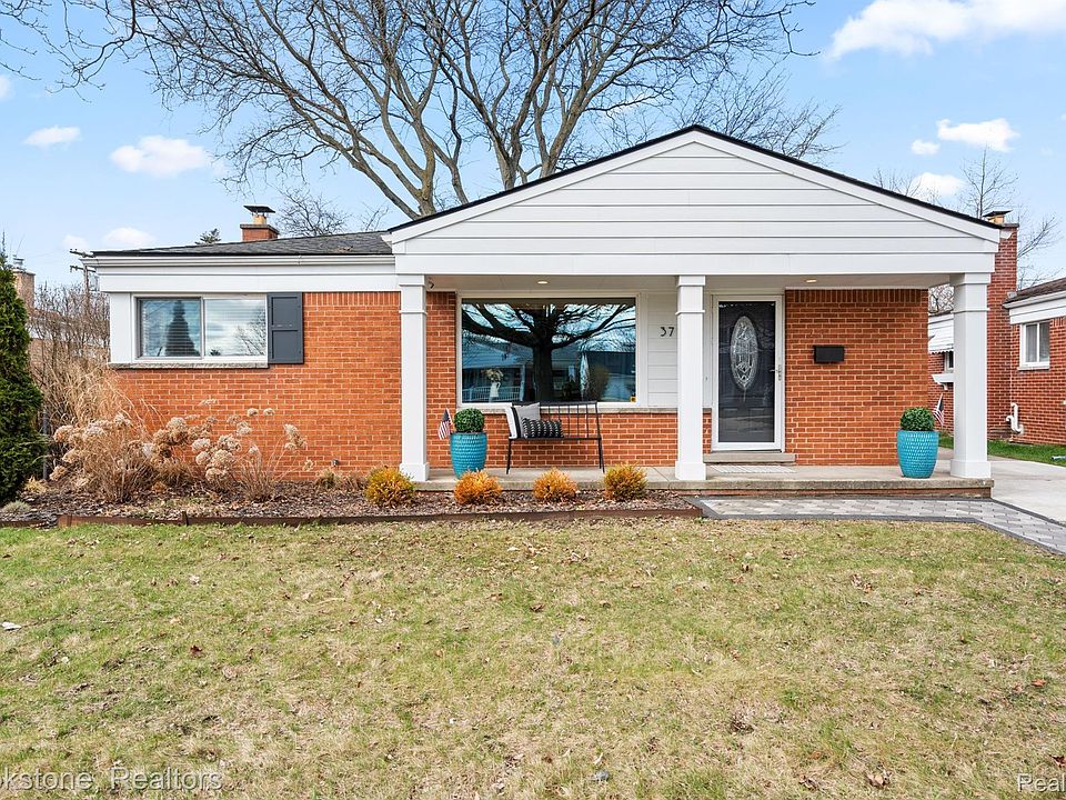 This gorgeous, modern brick ranch with open floor plan is move-in ready, with extensive professional upgrades inside and out. The kitchen features updated lighting, quartz tops and sills with deco tiled backsplash, spacious pantry, large under mount sink with Grohe faucet and modern maple cabinetry. Sliding glass doors allow plenty of natural light with a great view into the large, fenced yard and new stained wood deck. The completely remodeled bathroom includes luxury Grohe and Toto plumbing fixtures and a gorgeous marble floor tile. Rich, dark stained oak flooring throughout the main living area and 3 comfortable bedrooms. The completely finished lower level includes new carpet, fresh paint, a full wet bar with tons of storage and second full size refrigerator, a half bath and laundry – perfect for an additional family room and entertaining friends. Every detail of this home has been thoughtfully and meticulously customized from the interior trim package, to the front porch columns and brick paver walkway. Park 2 SUV’s in this oversized garage with fresh paint, updated windows and exterior lighting. The home has been professionally pre-wired for a whole house generator. This fantastic location offers a quiet neighborhood with beautiful tree lined streets, and many parks within walking distance. Just a short drive to downtown Birmingham, Royal Oak and Somerset Collection.
