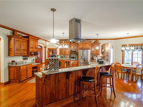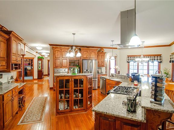 Welcome Home to over 8300sqft of Luxury Living! Discover your dream home in the heart of tranquility with this exquisite all-brick masterpiece. Nestled in a serene setting, this spacious gem offers everything you've ever desired and more. Don't miss the opportunity to make this incredible property yours as it offers comfortable living on any of the 3 levels each with their own climate control. Beautiful woodwork in your private office space. Brand new whole home reverse osmosis system. The main floor boasts a luxurious master bedroom with all the amenities you crave. Enjoy a cozy sitting area by the fireplace, an enclosed sitting area on the deck for those serene mornings, and spacious walk-in closets. Your master suite is an oasis of comfort and style. Gourmet Chef's Kitchen The kitchen is a culinary haven for any aspiring chef, with ample room for your culinary creations. With a generous eat-in area, cooking and entertaining are seamlessly combined, making this space the heart of the home. With over 3500 sqft of finished space in the basement, the possibilities are endless. Entertain friends and family in style with a bar area, a large room with a pool table, and a cozy seating area. Plus, there are two non-conforming bedrooms and a full bath, making this space versatile for all your needs. This home has you covered with a spacious safe room for your security and ample storage space for all your treasures. Your peace of mind is a top priority here. For the car enthusiast or those with a lot of toys, a large 3-car garage ensures you have plenty of space for vehicles and storage. Backed by a secluded area of lush trees and abundant wildlife, your backyard becomes a private sanctuary. Enjoy the beauty of nature right at your doorstep. Inground sprinkler to keep the yard nice and green. Listing agent is related to seller.