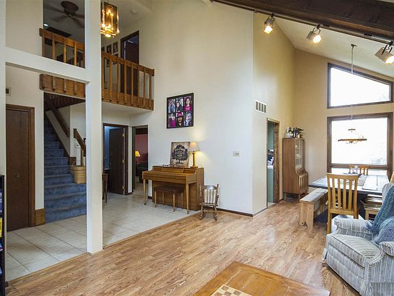 Come take a look at this 4 bedroom 2.5 bath home in Southwest Allen County Schools! This home has a unique architectural style and features thick beams and a skylight in the vaulted living/dining room, a large 12x9 ft foyer, decent cabinet space and all kitchen appliances stay, a huge family room with a wood-burning stone fireplace, vaulted ceilings in all of the bedrooms, double sinks in the upper common bathroom and some recent updates. Recent updates include a water heater in 2016, skylight in 2011, refrigerator and dishwasher in 2014, furnace and AC in 2004, family room carpet in 2014, and sellers are offering an updating allowance. A nice sized deck, a treeline to the back of the property, and an attached storage shed round off this great property! Schedule your showing today!