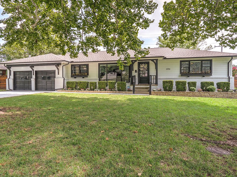 Modern remodel in Ranch Acres! ALL NEW: exterior/interior paint, driveway and sidewalk, concrete back patio, 8 ft back fence along Harvard, front fence and one of the side fences, tile in kitchen, laundry room, and all three bathrooms, stainless steel appliances in kitchen, kitchen sink and faucet, light fixtures throughout home, hot water heater, black metal barn/French doors in living room, vanity, soaker tub, fixtures and shower tile in master bath, vanity and shower tile/fixtures in hall bath, vanity/fixtures in on-suite extra full bath, back exterior doors and a few new interior doors, carpet in master. 2nd bedroom has full private bathroom and walk in closet. Split floor plan and walk in pantry in kitchen. Large picture windows in living room with electronic blind coverings.