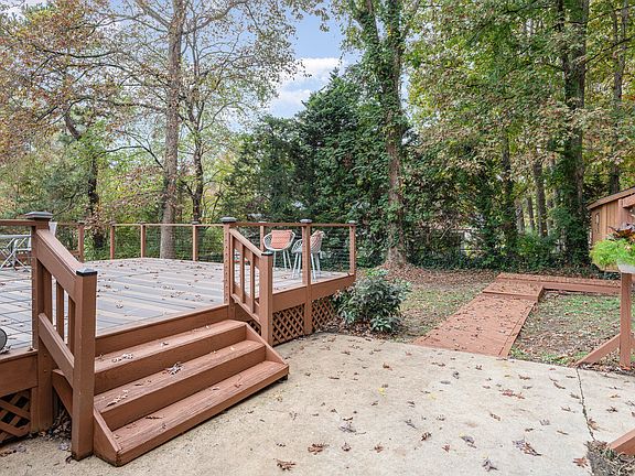 This one will be hard to beat! Located on a .42 AC lot just 10 minutes from downtown Raleigh, this spacious & comfortable 4-bedroom home offers both style and convenience. The property features multiple inviting living spaces, including a bright living room with a large picture window and hardwood floors, a large family room with masonry FP w/gas logs and a versatile sunroom with vaulted ceiling, perfect for an office, playroom, or flex space to suit your needs! Primary BA has tiled walk-in shower. Smooth ceilings & updated lighting throughout! Step outside to relax or entertain on the impressive 500+ square-foot composite deck with stylish horizontal railings, overlooking a functional patio and a fenced backyard that's ideal for kids, pets, or gardening. There's also a separate shed offering extra storage or the potential for a workshop + outside storage closet. With a new HVAC system installed in 2022 and an eye-catching metal roof, this home is designed for comfort, efficiency, and minimal maintenance. Enjoy nearby shopping & city parks, including playground, tennis courts, picnic shelter & grilling area. Don't miss the chance to make this exceptional property yours — come see this one for yourself before its too late!
